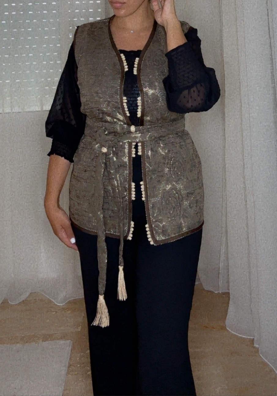 Gilet brocard sans manche, élégant et raffiné, parfait pour superposer et sublimer vos tenues du quotidien ou de soirée.